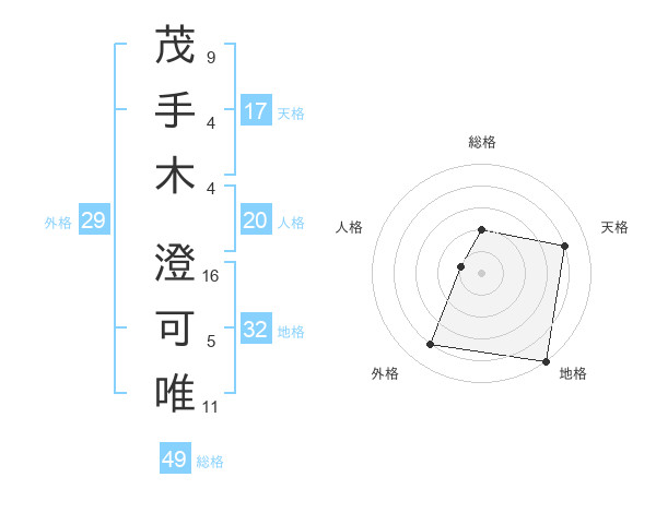 茂手木 澄可唯さんを姓名の画数から五運を鑑定