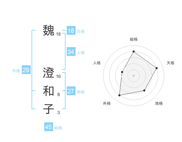 魏 澄和子さんを姓名の画数から五運を鑑定
