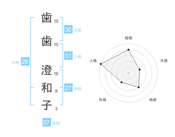 歯歯 澄和子さんの総格は57画の4点!