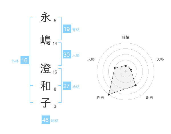 永嶋 澄和子さんを姓名の画数から五運を鑑定