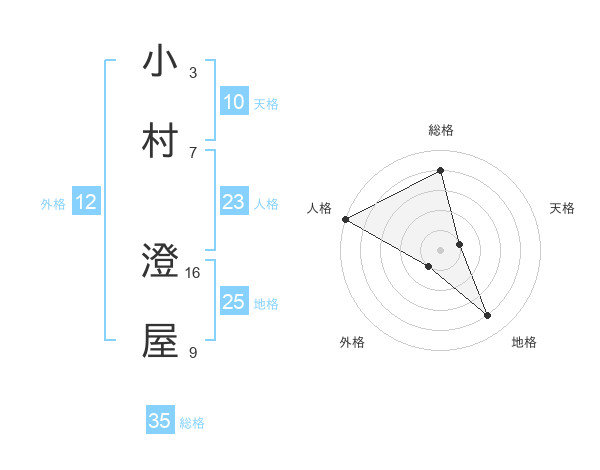 小村 澄屋さんの総格は35画の4点!