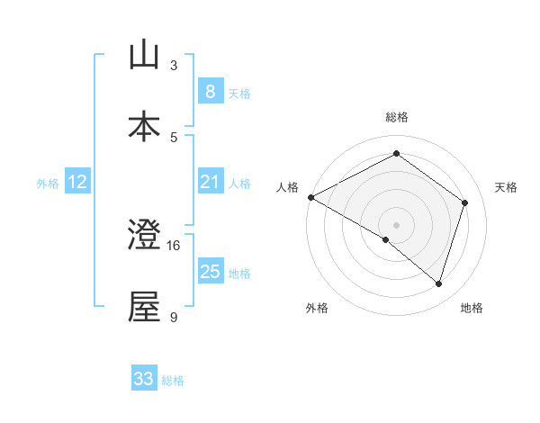 山本 澄屋さんを姓名の画数から五運を鑑定