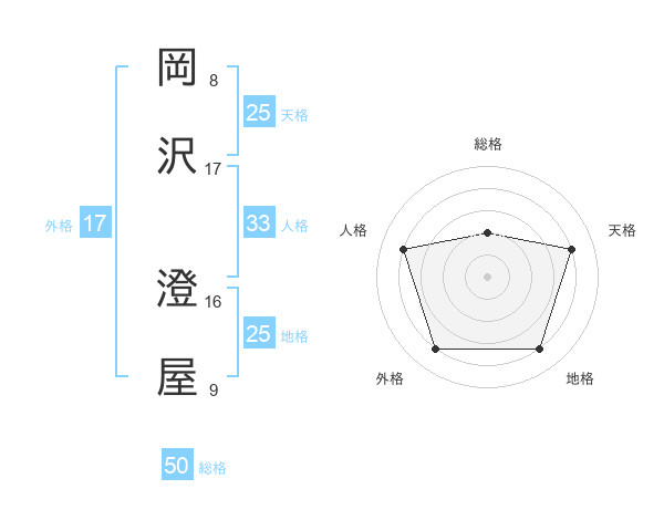 岡沢 澄屋さんの総格は50画の2点!