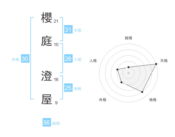 櫻庭 澄屋さんを姓名の画数から五運を鑑定