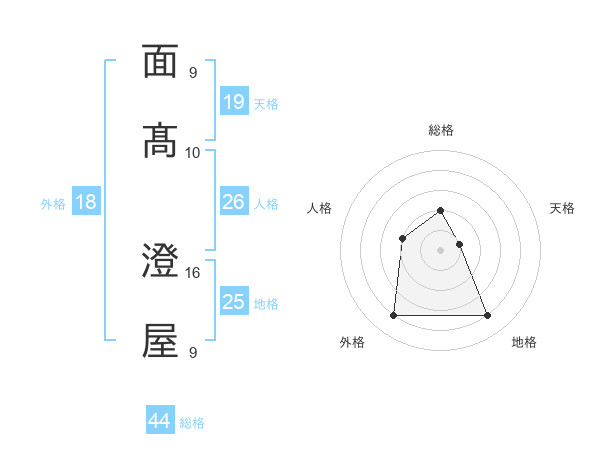 面髙 澄屋さんの総格は44画の2点!
