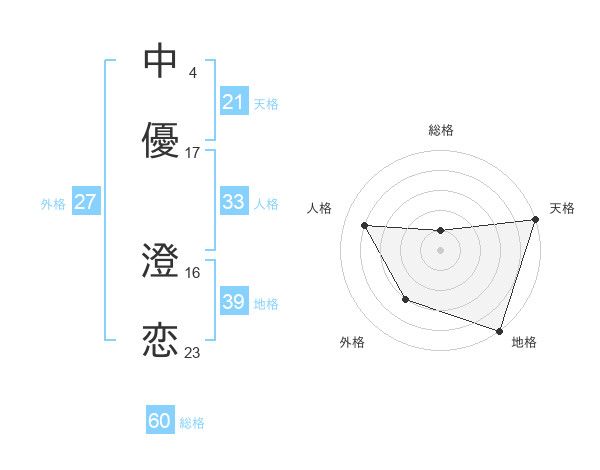 中優 澄恋さんを姓名の画数から五運を鑑定