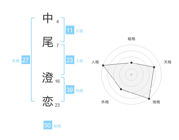 中尾 澄恋さんの総格は50画の2点!