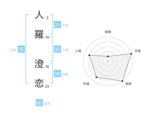 人羅 澄恋さんの総格は60画の1点!