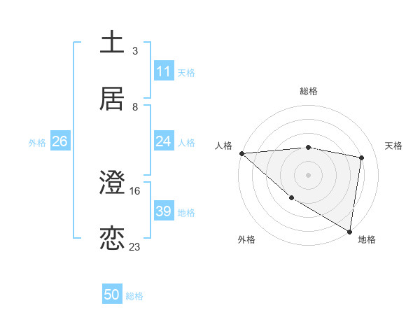 土居 澄恋さんの総格は50画の2点!