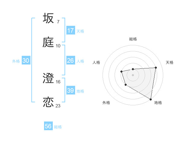 坂庭 澄恋さんを姓名の画数から五運を鑑定