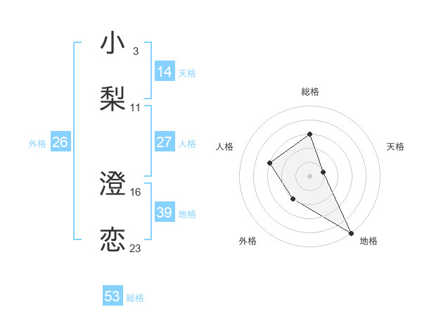 小梨 澄恋さんを姓名の画数から五運を鑑定