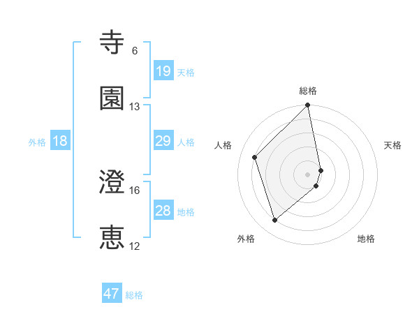 寺園 澄恵さんを姓名の画数から五運を鑑定