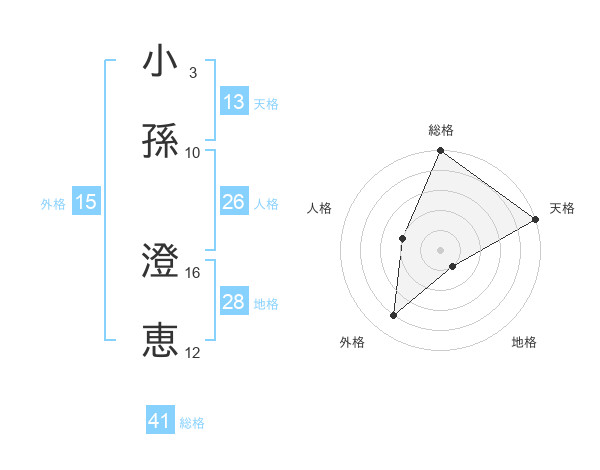 小孫 澄恵さんの天格は13画の5点!