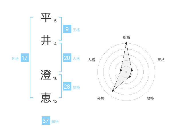 平井 澄恵さんの総格は37画の5点!