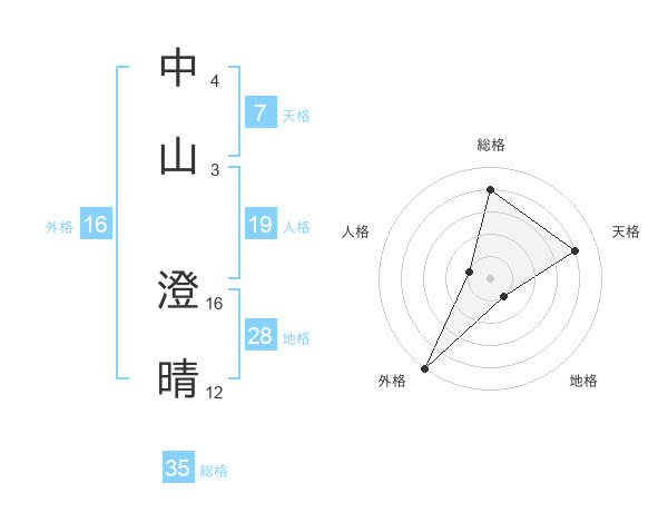 中山 澄晴さんの天格は7画の4点!