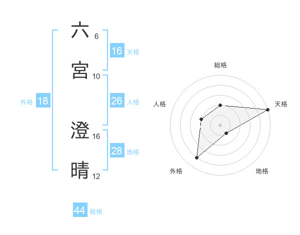 六宮 澄晴さんを姓名の画数から五運を鑑定