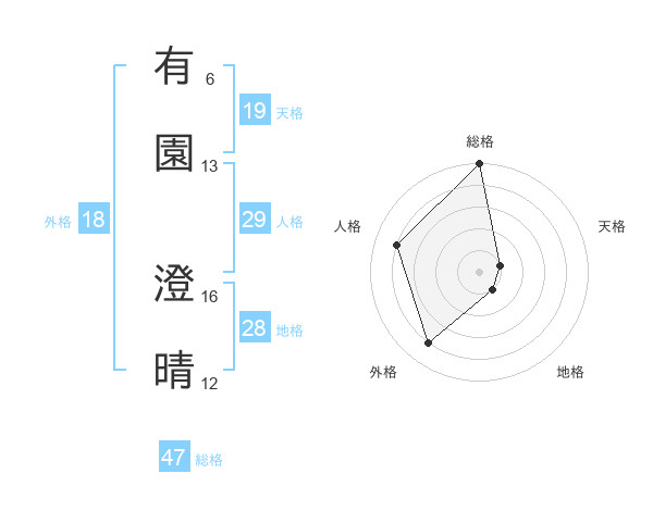 有園 澄晴さんを姓名の画数から五運を鑑定