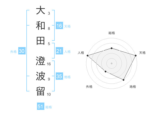 大和田 澄波留さんを姓名の画数から五運を鑑定