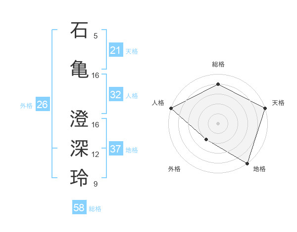 石亀 澄深玲さんを姓名の画数から五運を鑑定