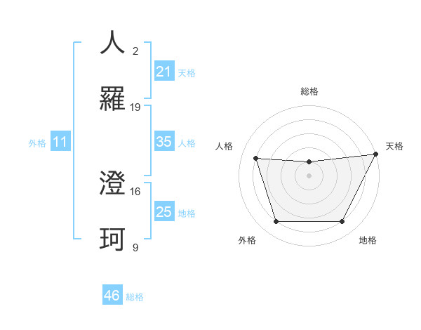 人羅 澄珂さんの天格は21画の5点!