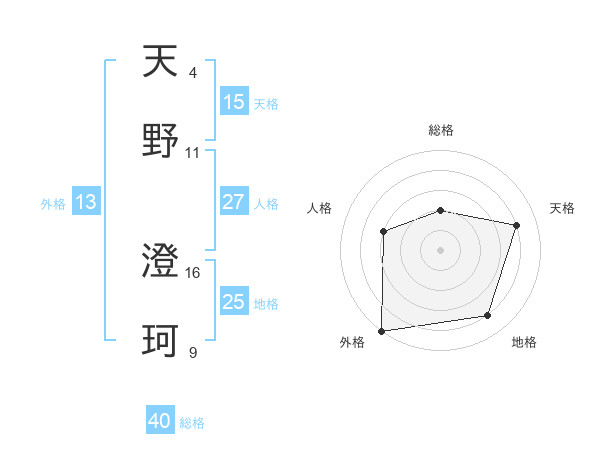 天野 澄珂さんの総格は40画の2点!