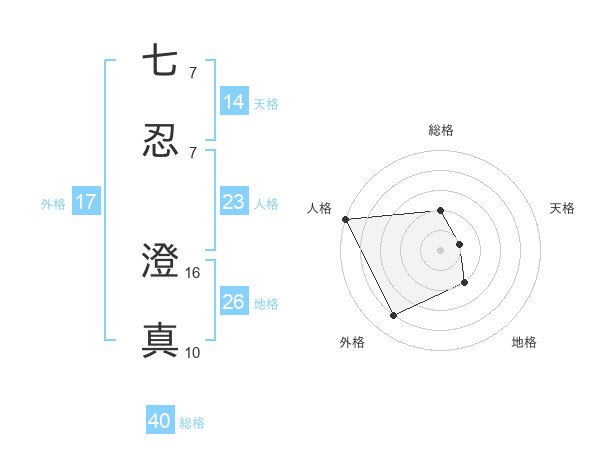 七忍 澄真さんの外格は17画の4点!