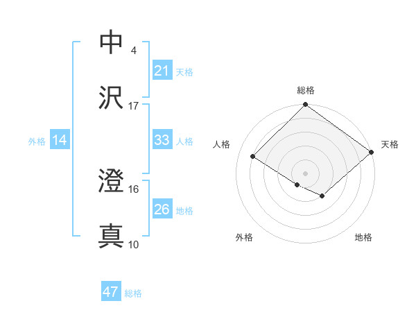 中沢 澄真さんを姓名の画数から五運を鑑定