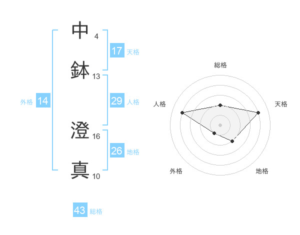 中鉢 澄真さんの天格は17画の4点!