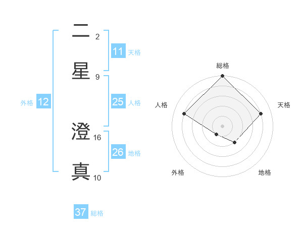 二星 澄真さんの総格は37画の5点!