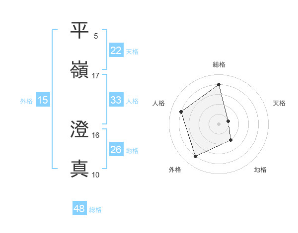 平嶺 澄真さんを姓名の画数から五運を鑑定