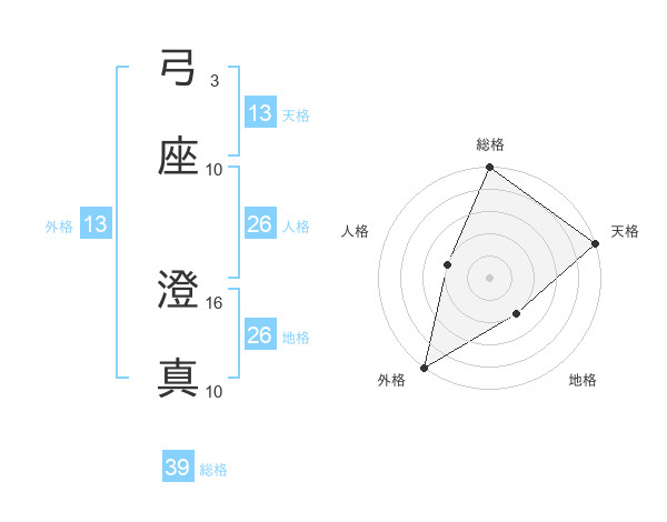 弓座 澄真さんを姓名の画数から五運を鑑定