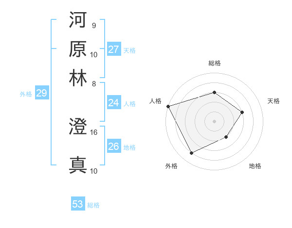 河原林 澄真さんを姓名の画数から五運を鑑定