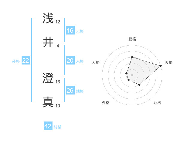 浅井 澄真さんの天格は16画の5点!