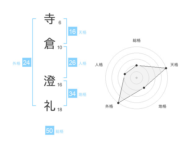 寺倉 澄礼さんの天格は16画の5点!