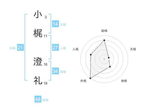 小梶 澄礼さんの天格は14画の1点!