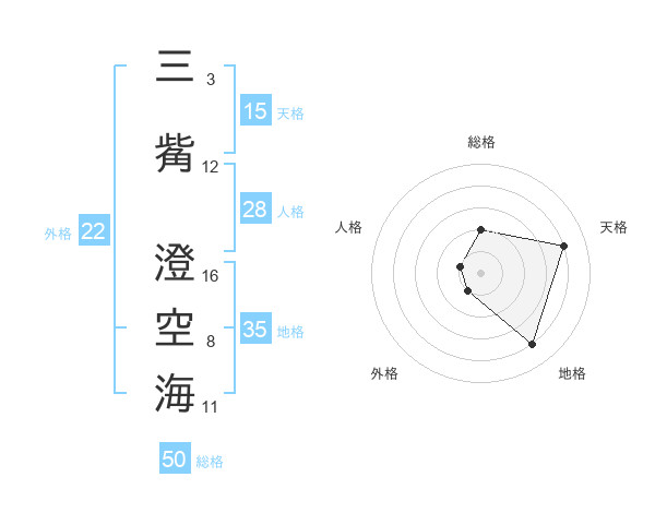 三觜 澄空海さんの外格は22画の1点!