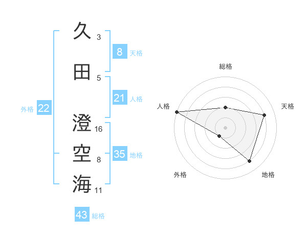 久田 澄空海さんを姓名の画数から五運を鑑定