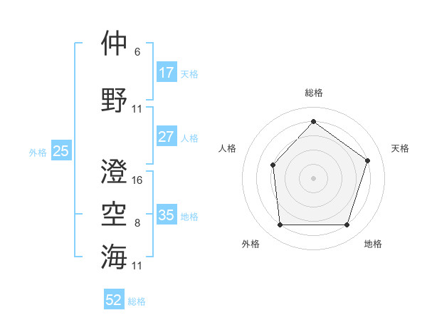 仲野 澄空海さんを姓名の画数から五運を鑑定