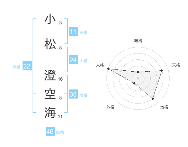 小松 澄空海さんの地格は35画の4点!