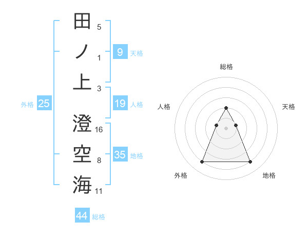 田ノ上 澄空海さんを姓名の画数から五運を鑑定