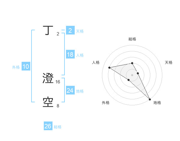 丁 澄空さんの総格は26画の2点!