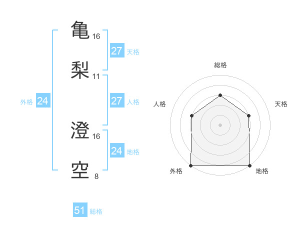 亀梨 澄空さんを姓名の画数から五運を鑑定