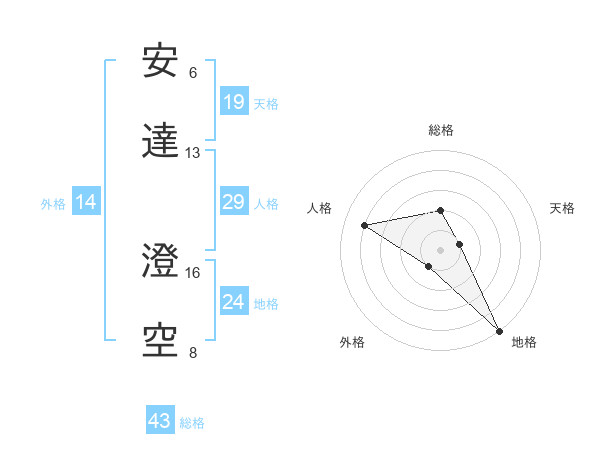 安達 澄空さんの総格は43画の2点!