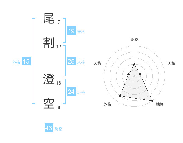 尾割 澄空さんの外格は15画の4点!