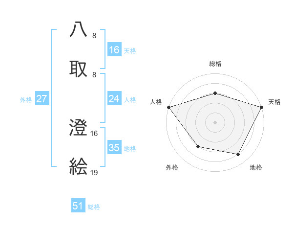 八取 澄絵さんの総格は51画の3点!