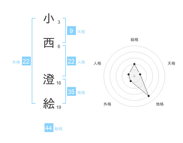 小西 澄絵さんの外格は22画の1点!