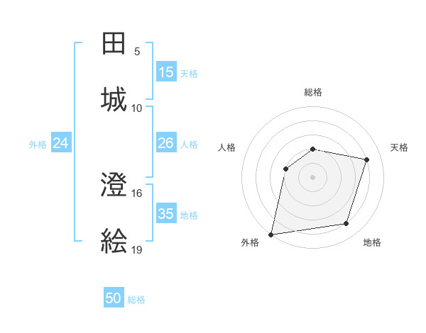 田城 澄絵さんを姓名の画数から五運を鑑定