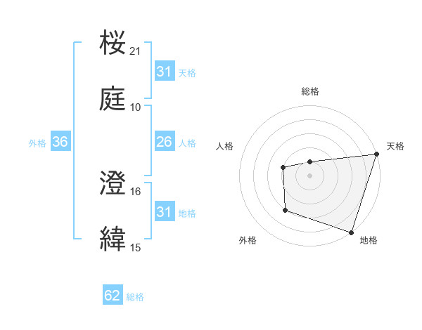 桜庭 澄緯さんの天格は31画の5点!