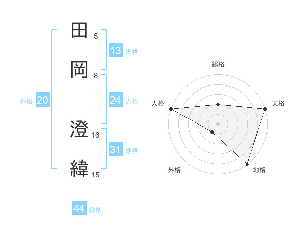 田岡 澄緯さんの総格は44画の2点!