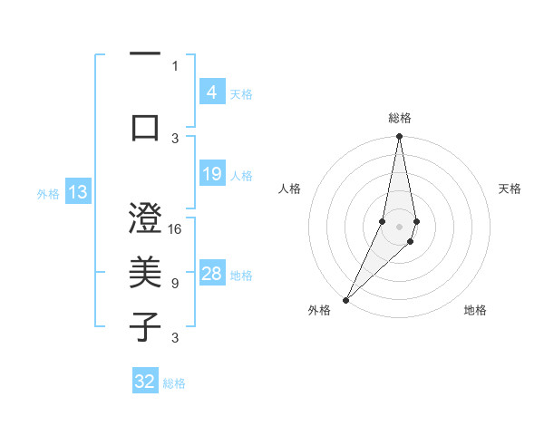一口 澄美子さんを姓名の画数から五運を鑑定
